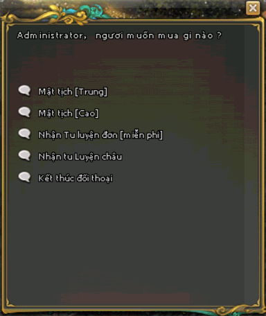 - Ngoài ra còn có cửa hàng Mật tịch Trung, Cao, Già Lam Kinh 180. Trận pháp Trung, Cao, và trận pháp VIP.