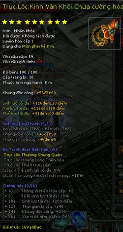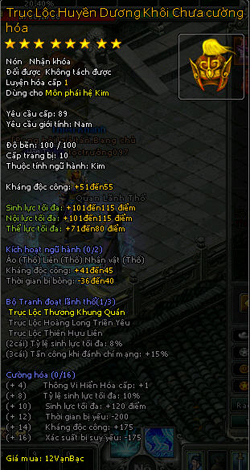 Mạo tử luyện hoá đồ: luyện nón cấp 10 thành bộ Trục Lộc. |