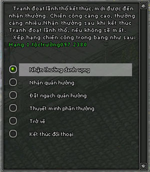 - Sau khi ngừng chiến, có thể đến Quan Lãnh Thổ để nhận thưởng.