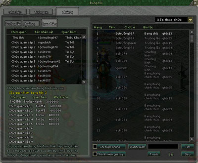 – Chức quan cấp 1 – 9: là tên gọi của 9 người có cổ phần cao nhất trong bang hội (chỉ thua thủ lĩnh).